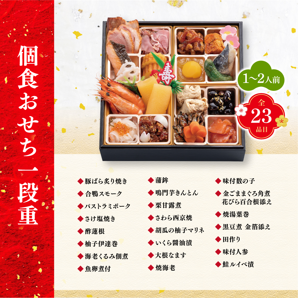 【冷蔵・送料無料】個食おせち一段重|23品目入り|12月31日お届け|1~2人前